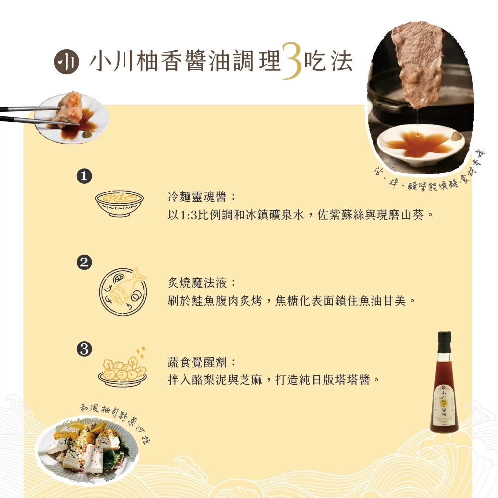 「職人級和風鮮味革命!鰹魚高湯×柚子果香雙重奏,一匙解鎖日式料理魂——天然發酵醬油基底融合柴魚昆布精華,佐以青辣椒香與柚子清甜,沾、拌、醃皆能喚醒食材本味。」